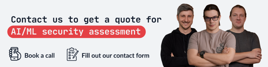 Fill out our contact form, indicating that you are interested in AI/ML security assessment. We will get back to you soon with our full offer.