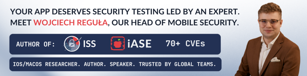 • Source code review – our review is based on Mobile Application Verification Standard (MASVS) and is performed with direct cooperation with the client’s developers.